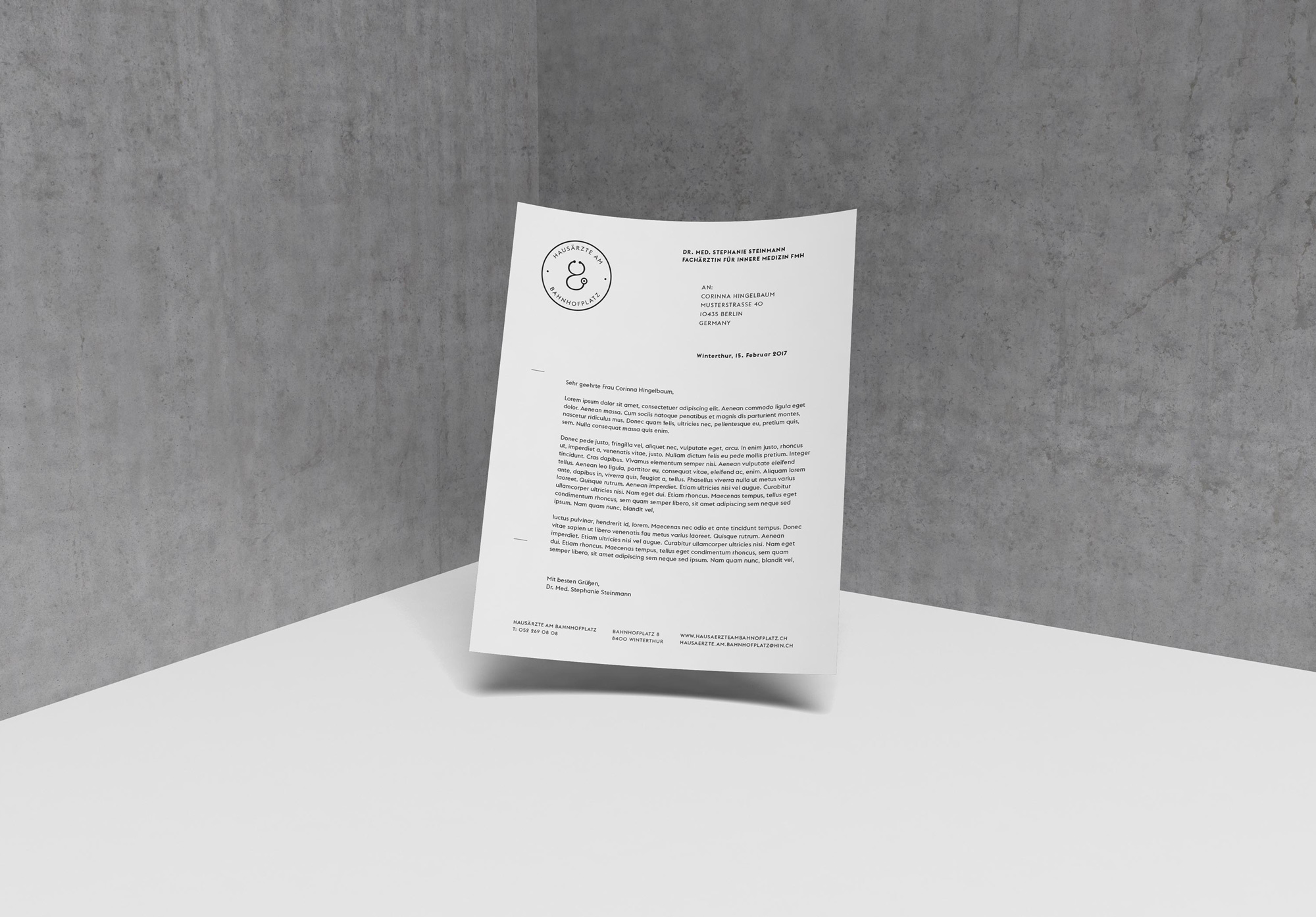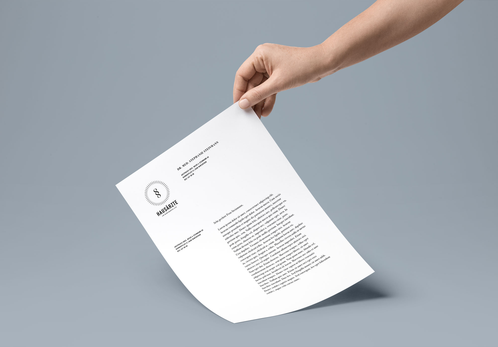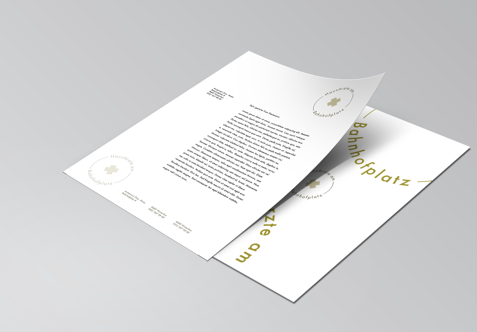 Die Hausärzte am Bahnhofplatz sind ein junges Team aus der Schweiz, das sich die traditionsreiche Hauptpost in Winterthurs Innenstadt als Location für ihre neue Ärztepraxis auserkoren hat. Ohne zu viele Konventionen zu brechen und trotzdem hervorzustechen, sollte das Erscheinungsbild Tradition und Moderne verbinden.