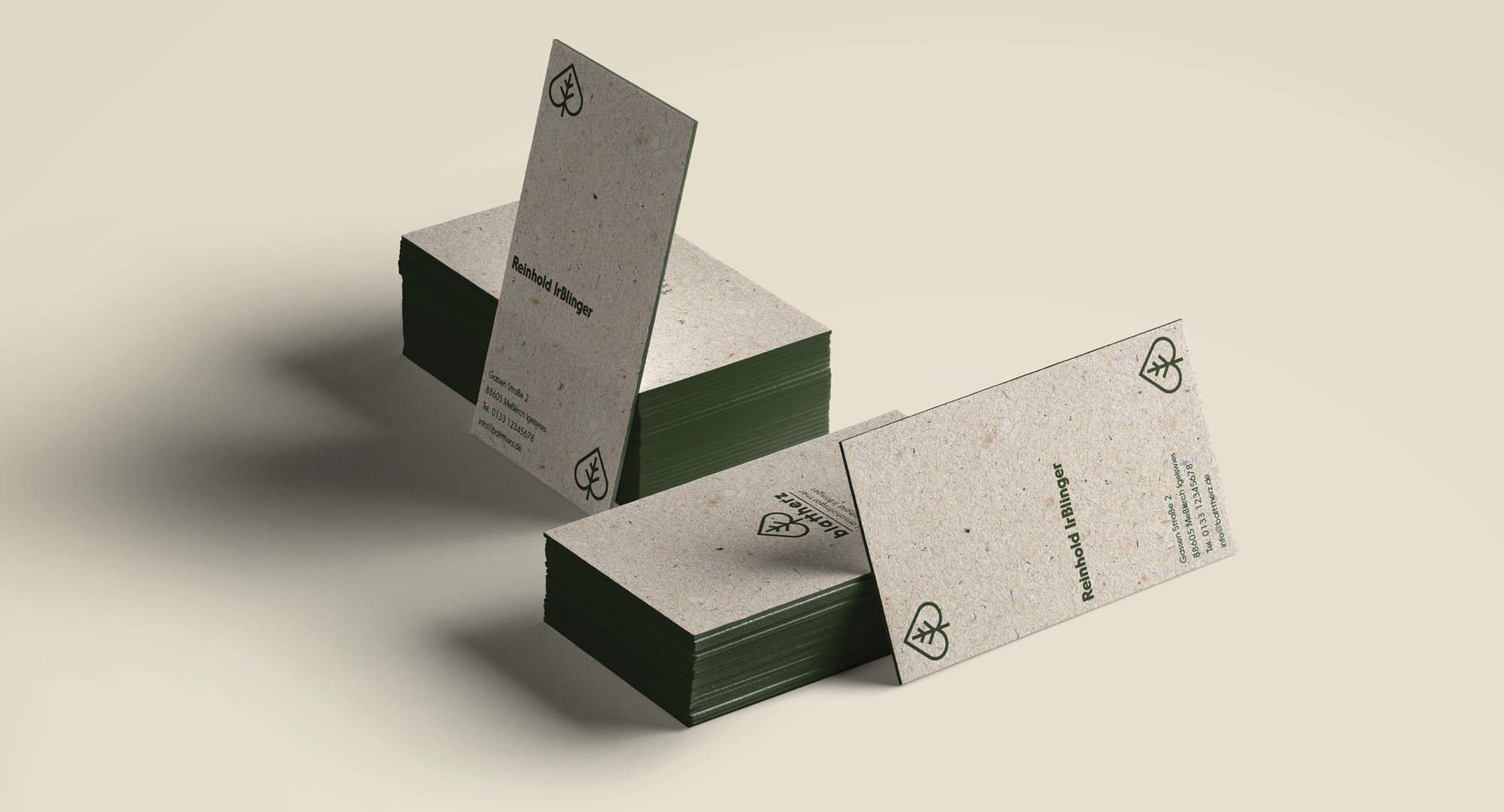 Die Arbeit für Reinhold Irsslinger hat großen Spaß gemacht, da wir sehr offen an die Namensgebung als auch die Visualisierung herangehen konnten. Wir haben versucht verschiedene Elemente im Bereich der Gartengestaltung zu vereinen. Am Ende haben wir ein etwas traditionelleres Erscheinungsbilder für ihn gestaltet, trotzdem möchten wir hier auch die ersten Entwürfe präsentieren.